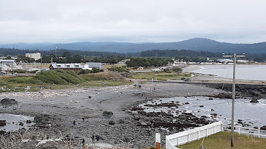 Two people were out surfing. We could hear the seals on the rock beyond. Clam chowder was calling our name so we headed home for lunch.